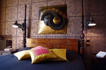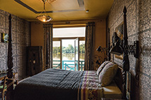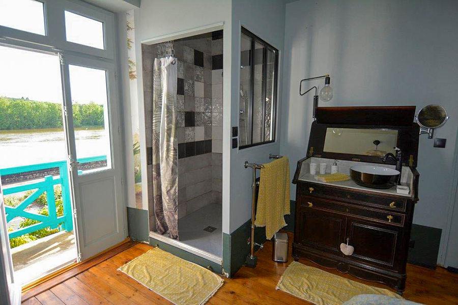 Dans un style original, la chambre Chanelle vous offre une vue sur la Loire. Sa salle de bain ouverte sur la chambre décline des couleurs vivifiantes.